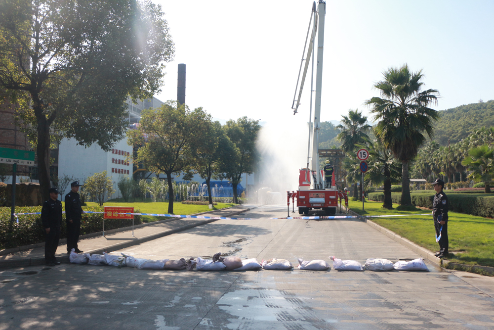 9时30分,实战演练准时开始,演练模拟J9国际站登录钢铁运输车辆将盐酸贮罐撞损导致浓盐酸和次氯酸钠泄漏,盐酸液体进入厂区的人工河(小溪),同时浓盐酸与次氯酸钠反应产生了大量氯气等有毒有害气体,并造成一名员工被灼烫。公司立即启动突发环境事件应急预案,安环部部长邹光远要求各应急小组迅速开展各项应急救援处置工作,随着酸泄漏量及事态逐步扩大,他及时将现场情况汇报给丽水市生态环境局青田分局及相关政府部门,并请求紧急支援。