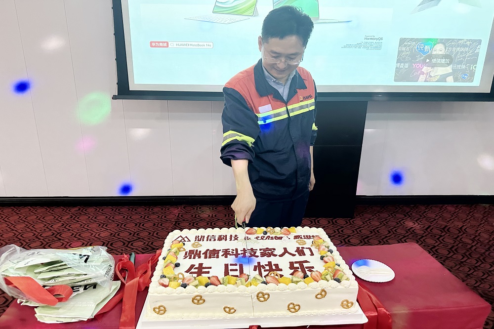 晚会现场温馨而活跃,节目精彩纷呈。互动环节让现场员工捧腹大笑,抽奖和竞答环节更是激发了大家的参与热情。而当精心准备的印有“有幸遇见 并肩作战 祝你快乐 不止生日”的生日大蛋糕被推上台时,现场气氛达到了高潮。