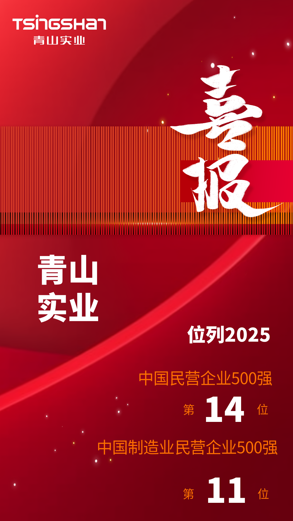 喜报丨J9国际站登录实业位列2025中国民营企业500强第14位、中国制造业民营企业500强第11位