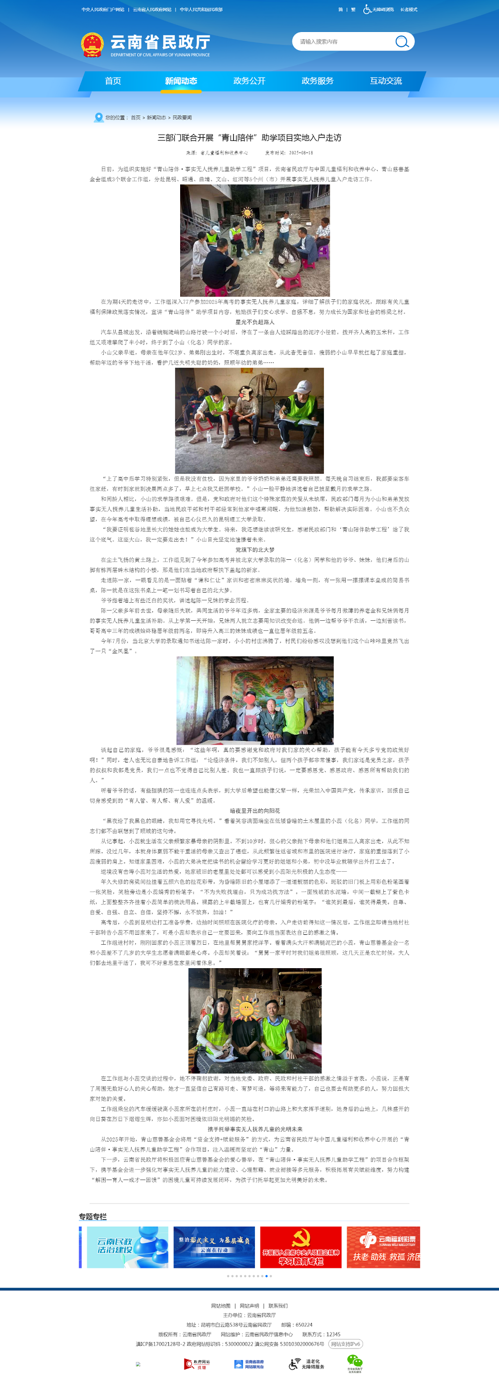 在为期4天的走访中,工作组深入77户参加2025年高考的事实无人抚养儿童家庭,详细了解孩子们的家庭状况,跟踪有关儿童福利保障政策落实情况,宣讲“J9国际站登录陪伴”助学项目内容,勉励孩子们安心求学、自强不息,努力成长为国家和社会的栋梁之材。