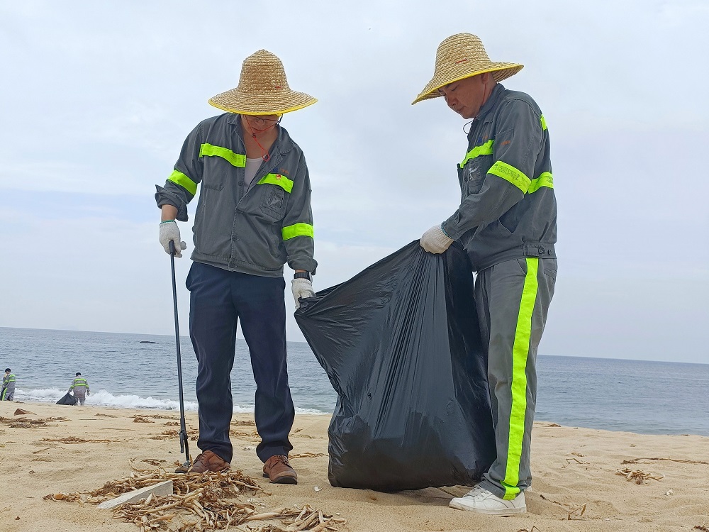 活动当天,党员与团员们身着统一服装,携带清洁工具前往东岛金沙滩。尽管酷热难耐,但全体人员热情高涨,大家分工明确、协作有序,配合十分默契,认真细致地清理沙滩上的各类垃圾,以实际行动为守护海滩贡献力量。经过共同努力,原本散落着垃圾的海滩焕然一新,重新展现出美丽的海滨风光。