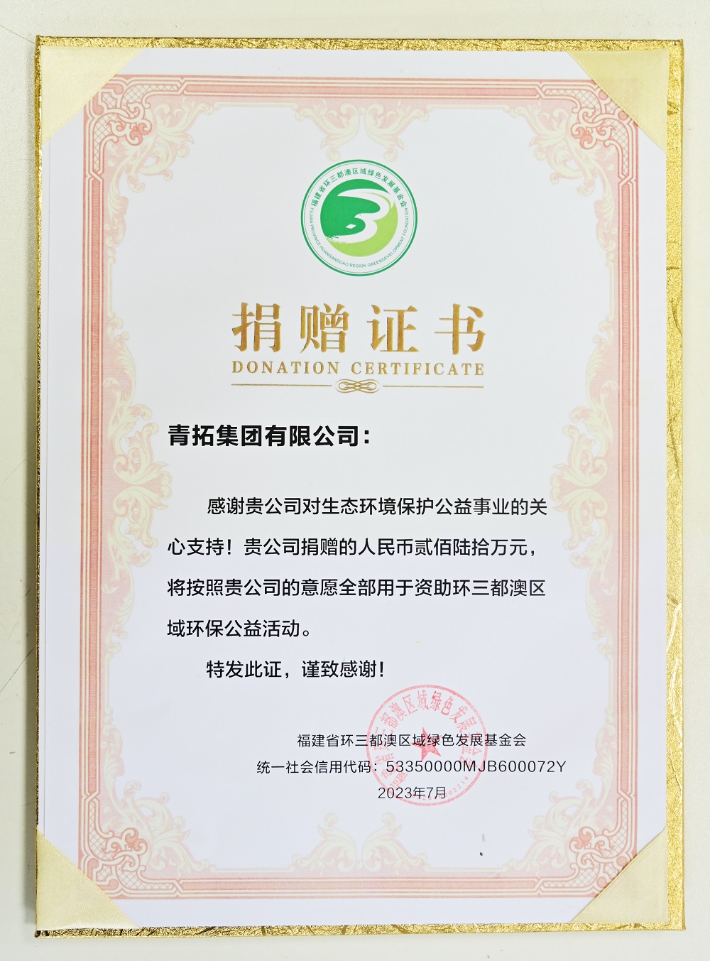 此次授牌仪式是对青拓集团联合福建省环三都澳区域绿色发展基金会开展的“开展增殖放流 保护海洋生态”项目的充分认可与肯定,是对青拓集团在生态环保方面做出的贡献以及在践行社会责任事业方面重大举措的表彰。