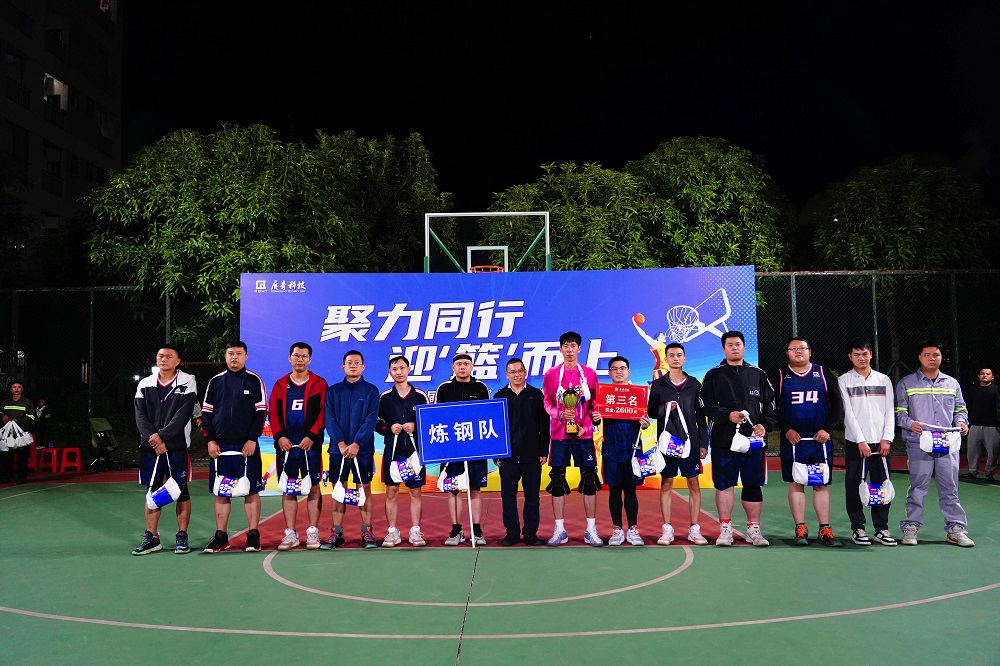 11月28日,广东广青金属科技有限公司“聚力同行,迎‘篮’而上”第十届“广青杯”职工篮球比赛在公司篮球场圆满落幕。公司党委副书记、工会主席王大庆出席并致闭幕词,公司党委委员、常务副总经理刘光勇,党委委员、副总经理熊章,各厂部负责人以及各兄弟单位相关负责人、参赛运动员、公司职工共400多人参加了闭幕式。