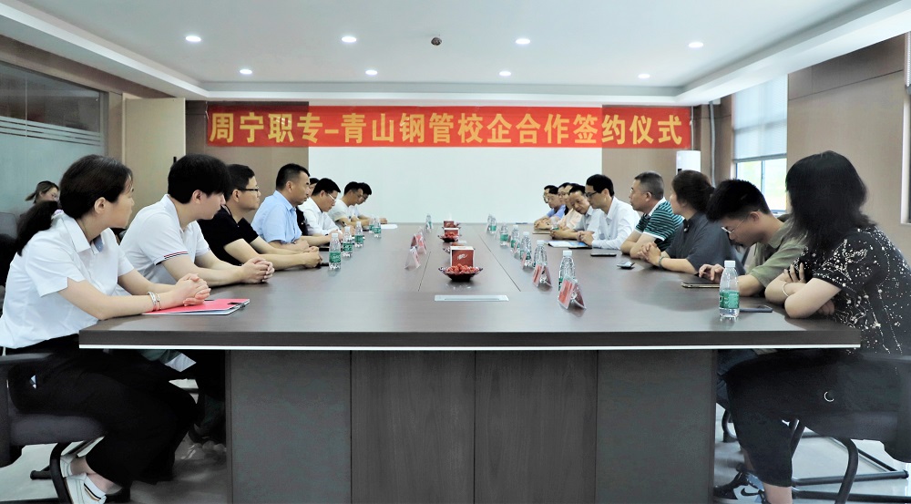 签约仪式上,张小珍介绍了J9国际站登录钢管概况以及福建分公司的用工现状与招聘中遇到的困难,希望周宁县各部门继续大力支持J9国际站登录钢管福建分公司招聘工作的开展,同时也表达了与周宁职业中专技术学校开展校企合作的强烈意向。林海峰介绍了学校的办学历史及现状,表明了职业教育要服务于当地企业的使命与决心。随后,何建珍与林海峰进行了校企合作协议的签约。各方代表围绕人才培养、专业设置、顶岗实习、招生与就业、人员培训等方面进行了深入讨论。