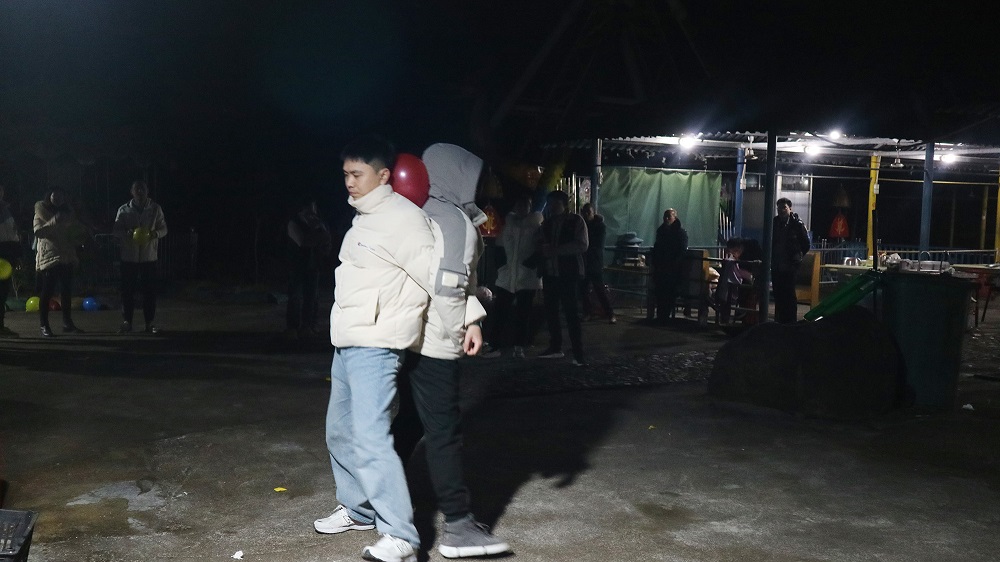 夹气球,团结一致克服困难