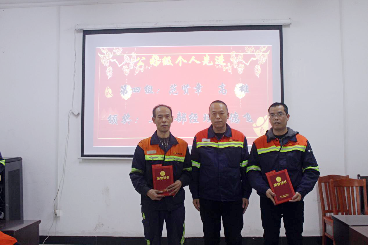 谢荣进宣读了先进表彰决定,对先进集体及个人寄予厚望。各部门领导为赵甲斗等10名先进个人、印尼项目部等4个先进集体颁发证书奖牌。