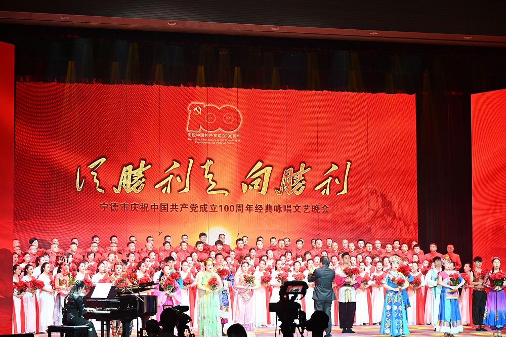 为隆重庆祝中国共产党成立100周年,回顾党的光辉历史,讴歌党的丰功伟绩,进一步激励全市广大党员、干部在党史学习中感悟初心使命、激发奋进力量,近日,“从胜利走向胜利”经典咏唱文艺晚会在宁德市高级中学礼堂举行。作为全市唯一优秀企业代表的青拓集团有限公司,派出50余名优秀职工参加合唱方阵演出。